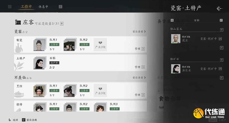 8.可以從莊客管理的派遣管理進入管理一覽,點擊對應設施的前往查看可以跳轉(zhuǎn)。采集需要點開對應人員頭像進入土特產(chǎn)設置,【但移動端存在無法跳轉(zhuǎn)的問題,需要從家業(yè)-經(jīng)營不羨仙中進入】
