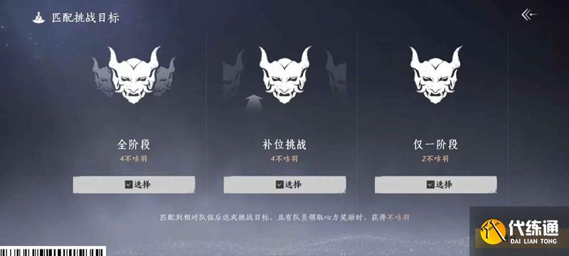 點匹配的時候先跳選擇,因為一個本里面不止一個關卡,全階段就是兩關都打,補位可能就是有的隊伍出現了少人的情況,補位進去可能跳過第一關只打第二關,僅一階段就是第二關不打,我全選是因為之前看攻略有老師說不用管直接全選就好,然后就是我發現全選匹配會更快一點(不知道是不是錯覺)