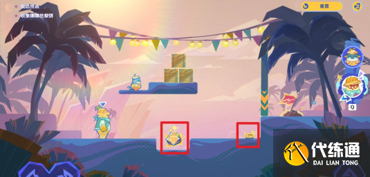 切換到小矮子,操作小矮子把平臺上方的三個箱子推到下層,然后調整大個子的位置,把箱子推到黃色按鈕上,移開第二個擋板。