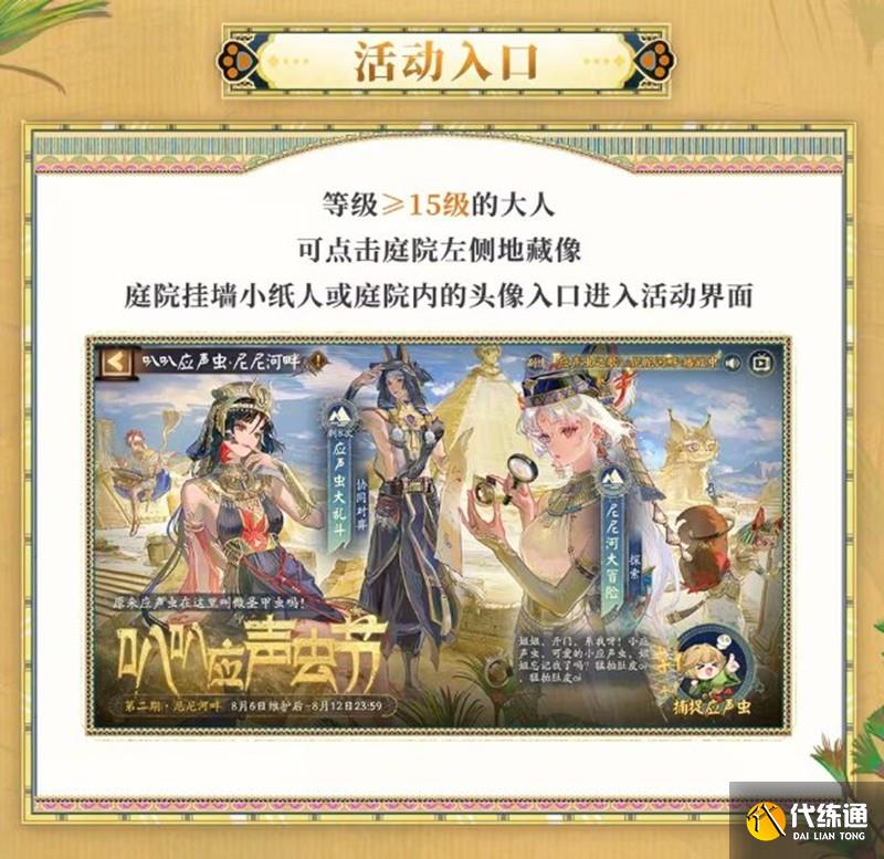 陰陽師手游即將推出全新的“應聲蟲節”活動,活動時間定于8月6日維護后至8月12日23:59。本次活動將帶領玩家進入一個古老而神秘的土地——尼尼河畔,探索應聲蟲的奧秘。