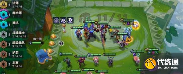 前中期過渡:法師+護(hù)衛(wèi)+斗魂為主打工陣容,爭取連勝或控制掉血