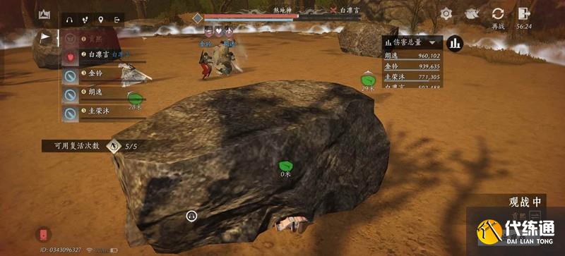 3.再次戰(zhàn)斗一段時間后BOSS會釋放關鍵技能《黃沙漫天》我們需要站在最后一顆石頭背后,與BOSS形成三點一線躲避團滅技傷害,此階段結束后所有石頭都會被BOSS摧毀,并且重新生成三塊石頭,我們需要從第一點開始重復以上步驟。