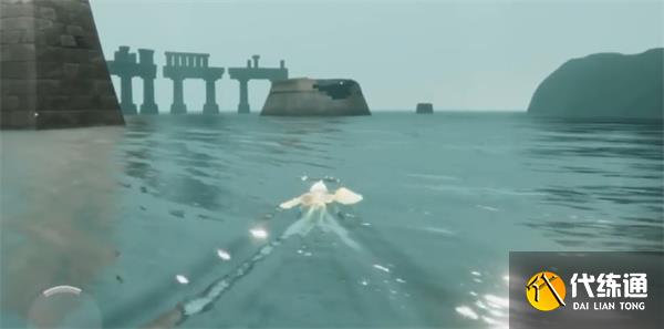 1、接取任務后,朝著頂部水面上的建筑物那里游;