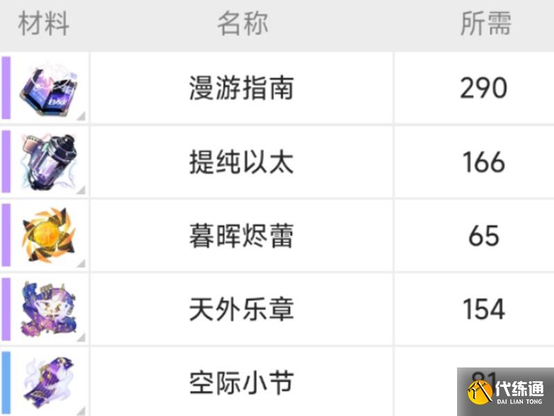 光錐強化需要166個提純以太,以及15個天外樂章、12個空際小節(jié)和4個云際音符。哀嘆、悲鳴和預(yù)兆的需求量分別是14個、20個和20個。這些材料都可以通過日常副本獲取,建議在培養(yǎng)其他角色時同步收集。