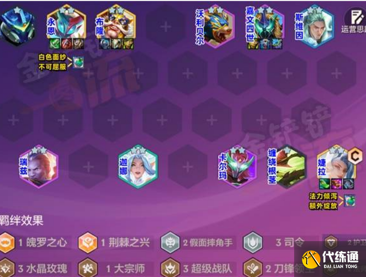 運營思路開局2-1經濟類強化或尋寶,或2-3終身黃銅、并肩作戰,場上質量高,裝備對,能連勝,就可以沖。