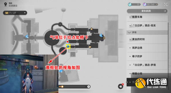 3、等進入后前走至紅地毯橋上,往右看,就能看到氣球了;
