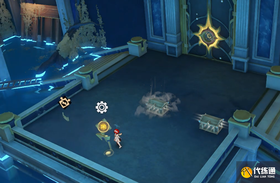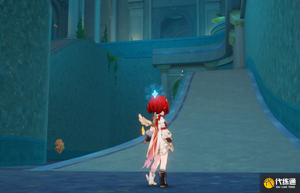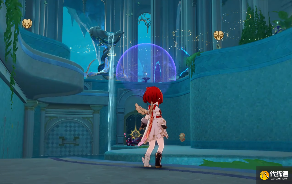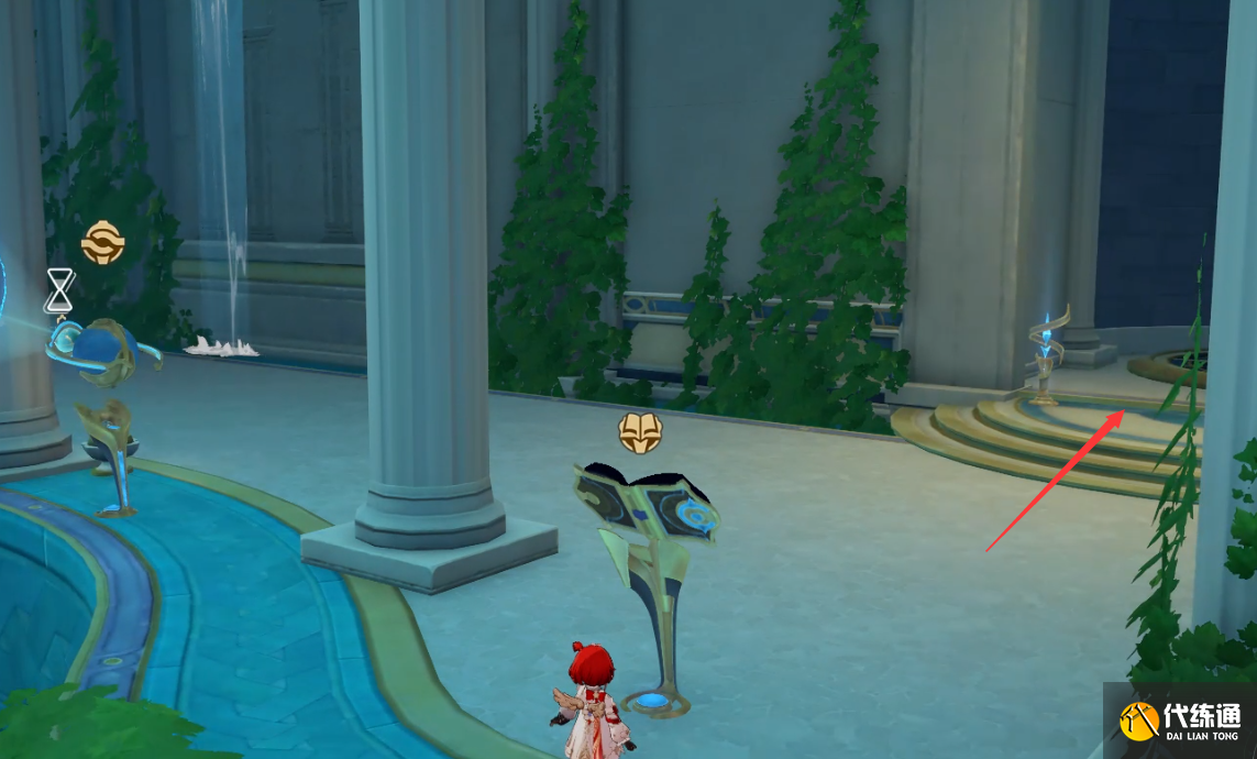 這次的是在水下,需要玩家先前往眠宮長廊,然后通過左側(cè)的電梯先前往2層(在電梯邊上有禱言,需要拿一下),通過二樓的機(jī)關(guān)前往右邊的電梯,再坐電梯下到1樓,通過時(shí)間回流將下方水池的水降到中層。