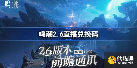 鳴潮2.6直播節目在8月16日開始,官方為玩家提供了三個兌換碼兌換豐厚獎勵,下面小編為大家帶來鳴潮2.6前瞻兌換碼大全,感興趣的小伙伴一起了解一下吧。