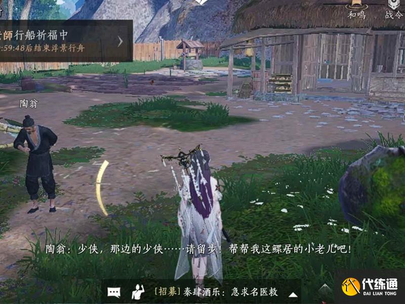 步行跑到陶翁的小屋,我沒有加速跑,就是正常速度跑的,等觸發屏幕下面一行小字說讓我幫幫他的時候(p3),停了一下,然后慢慢到他身邊,剛到他身邊碰了他一下就觸發了。