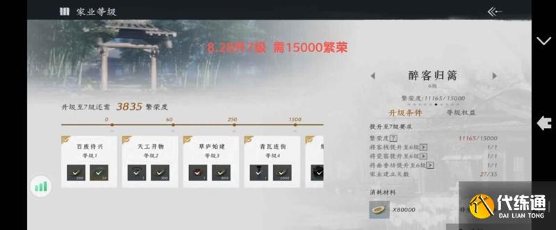 家業升級條件 需15000繁榮 需80000囤囤粟