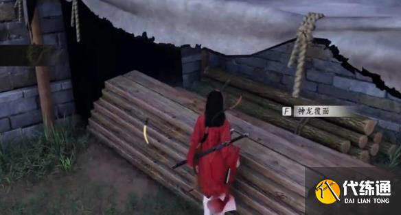 4、從縫隙過去在木板上找到【神龍覆面】,把道具給【苗阿遠】完成任務。