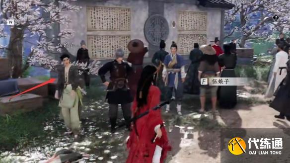 1、來到【御林苑】往左邊走靠近放榜臺對話【伍娘子】;