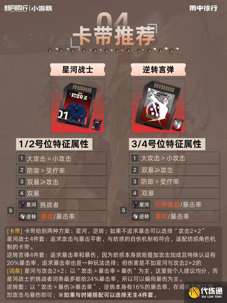 紡惑的卡帶選擇最推薦選擇:星河4件套、其次是攻擊2+2