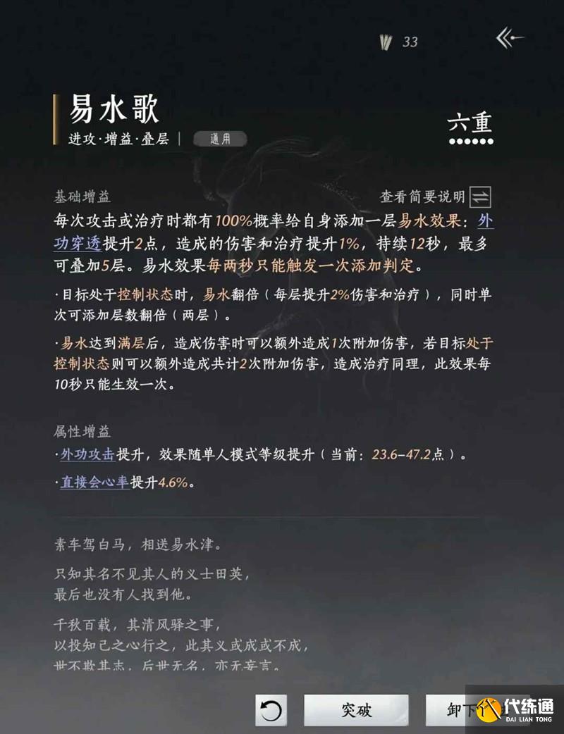 【易水歌+霖傘聯(lián)動(dòng):霖傘的后臺(tái)治療可以讓易水全程保持滿層狀態(tài)】很多其他流派止戈高手會(huì)追求容錯(cuò)放棄易水,但霖霖因?yàn)楸旧砣狈M(jìn)攻手段,要通過追求高奇術(shù)傷害來降低對(duì)手的容錯(cuò),可以看成是霖霖輸出端的流派金心法