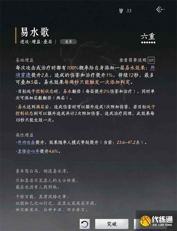 歸燕經(jīng):處決回血,提升氣竭反打的機(jī)會(huì),配合斷石優(yōu)先級(jí)更高。