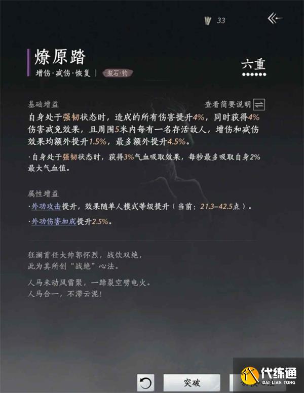 燎原踏:多人止戈中能作為戰(zhàn)斗奶媽的選擇。