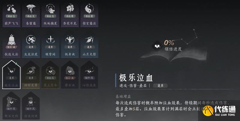 極樂泣血是一種帶有持續傷害效果的心法,攻擊時會對敵人施加debuff,并在疊加五層后造成一次高額傷害。這種心法適合喜歡控制戰場節奏的玩家。完成大相國寺燃燈僧的找人任務后,即可學會該心法。