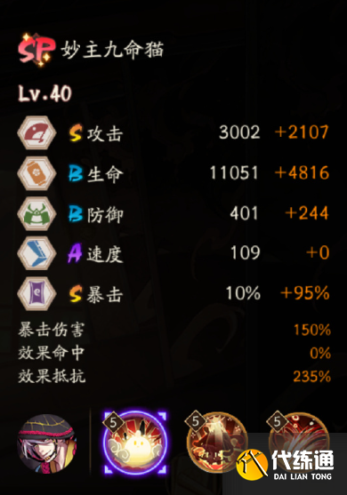 Lv.2 陰陽師喵均處于護駕狀態時,妙主九命貓速度提升150點并免疫行動條擊退效果