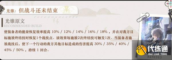 提供能量回復效率,解放配裝空間,可選擇攻擊繩。終結技后為下一位行動角色增加傷害,適合與特定配速隊伍搭配。