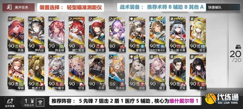 核心:全程用維什戴爾1技能,無需專精即可擺完掛機(含應急)。裝置選輕型瞄準測距儀,第四關元件選左1,陣容常規(guī)陣容即可,推薦不帶術士多帶狙,備一兩個奶盾或奶,輔助推薦有回血的魔王和濁蒂,可以再帶一個泥巖/烏爾比安之類的用于守線(不必要)。