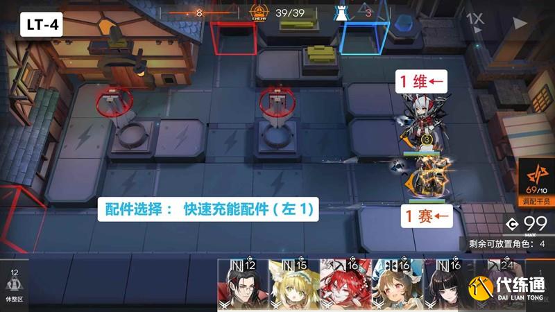 第三關:賽媽位置開局最好用伊內(nèi)斯等有作戰(zhàn)能力的先鋒,更穩(wěn)做法是后面再擺一個先鋒(比如桃子)。優(yōu)先疊出五狙維,然后后面補個奶或回血輔助即可。