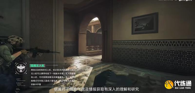 銀翼的標志性裝備之一是獵鷹無人機。這種無人機可以標記80米內的視野內敵人,并且能夠攜帶并投擲脈沖手雷。當無人機鎖定敵人時,可以釋放蜂鳥間諜攝像頭,對敵人進行精準的監視和追蹤。這一技能使得銀翼在信息收集和戰場控制方面具有極大的優勢。