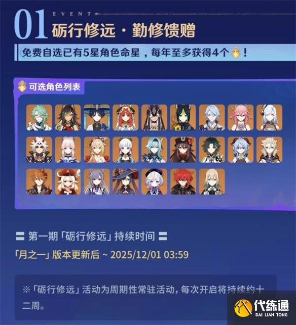 每年可自選4個已有5星角色命星(含部分限定角色)