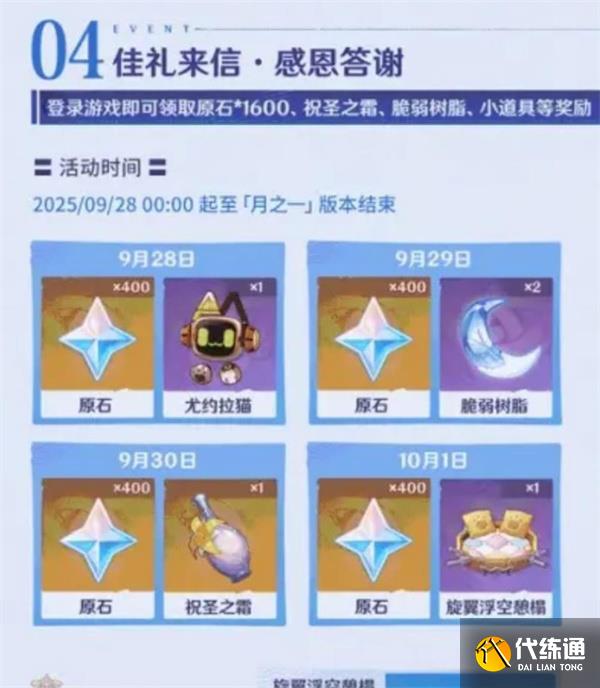 登錄即可領取原石*1600、脆弱樹脂、小道具等