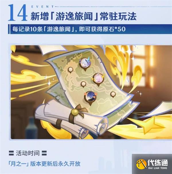 新增游逸旅聞(永久開放):記錄10條旅聞可得原石*50