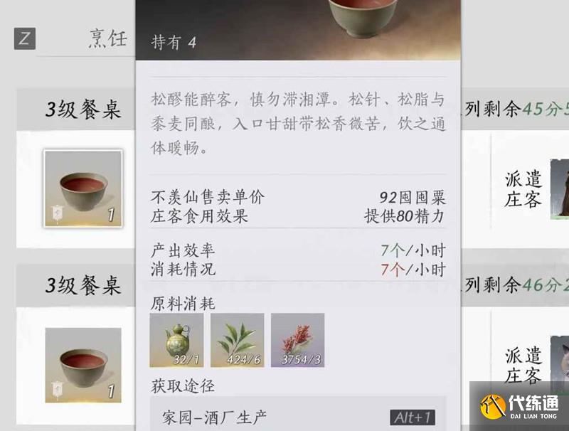 釀酒:全部制作松醪酒