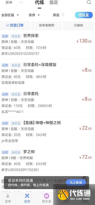 代練通上的訂單數量那叫一個驚人,簡直就像一個裝滿寶藏的“訂單寶庫”。原神 6.0 版本相關的代肝需求豐富多樣,不管是每周的聲望任務、周本挑戰,還是角色突破材料的收集、世界等級的提升,你都能在這里找到對應的訂單。聲望任務代肝,就像給雇主配備了一個“專屬任務小秘書”,按時按點地完成各項任務,提升聲望等級;周本挑戰訂單,從普通難度的輕松通關,到高難度的極限挑戰,應有盡有;還有那些角色突破材料收集訂單,各種珍稀的礦石、植物、怪物掉落物等等,只有你想不到的,沒有你接不到的。有這么豐富的訂單資源,根本不用擔心會“沒活干”,只要你有足夠的游戲實力和時間,就能持續不斷地賺取收益。