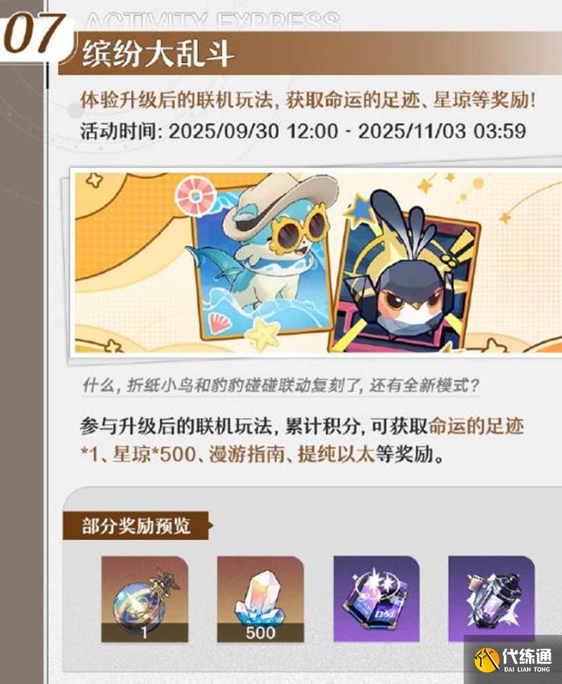 活動描述:體驗升級后的聯機玩法,獲取命運的足跡、星瓊等獎勵。