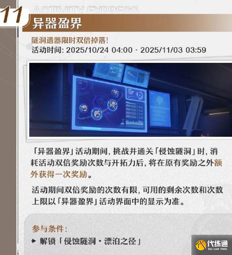 活動描述:隧洞遺器限時雙倍掉落。