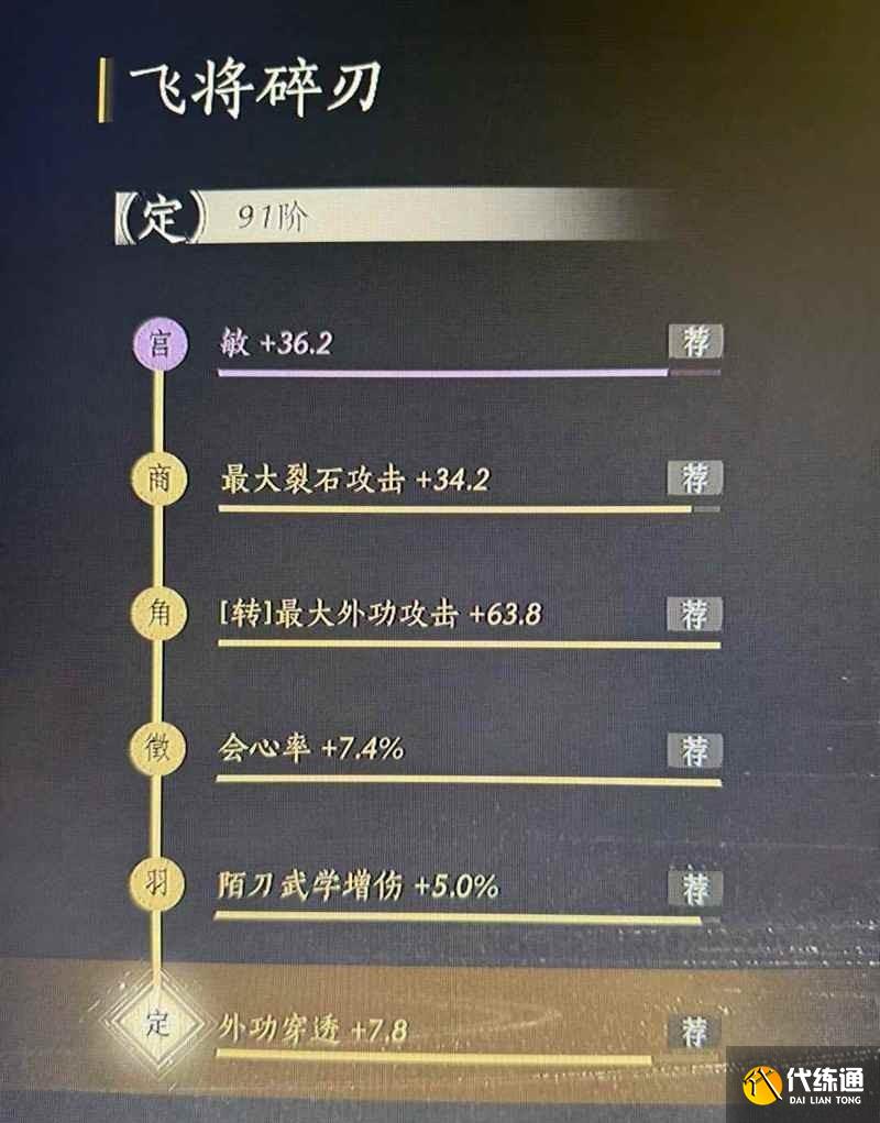 脛甲/腕甲:會心率,會意率,勁,精準率,體,御,最大氣血,外功防御