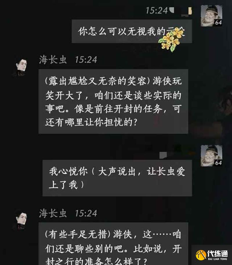 提及對話關鍵詞、圍繞關鍵詞發消息/贈禮即可滿好感成為江湖故人
