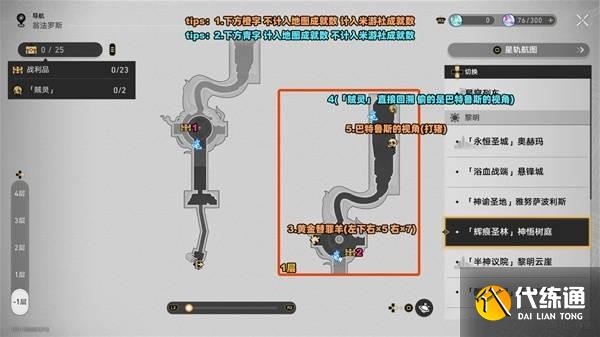 『「輝痕圣林」神悟樹庭』35個戰利品=「23個可見戰利品」+「2個賊靈」+「4個巴特魯斯的視角」+「4個黃金替罪羊」+「1個預言算碑」+「1個黃金短矛」。