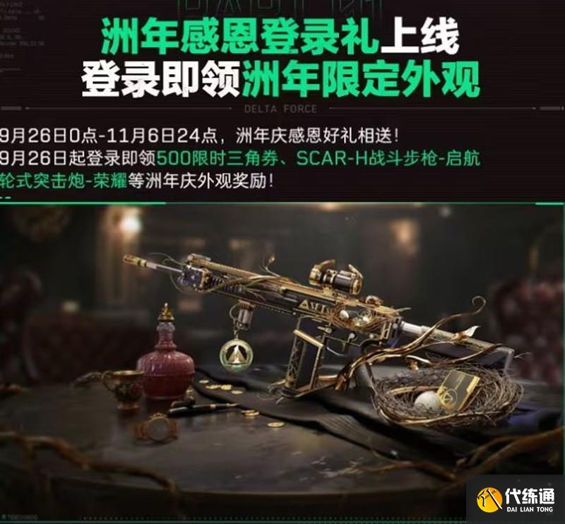 玩家在9月26日至11月6日期間登錄游戲,即可領(lǐng)取洲年限定外觀獎勵。