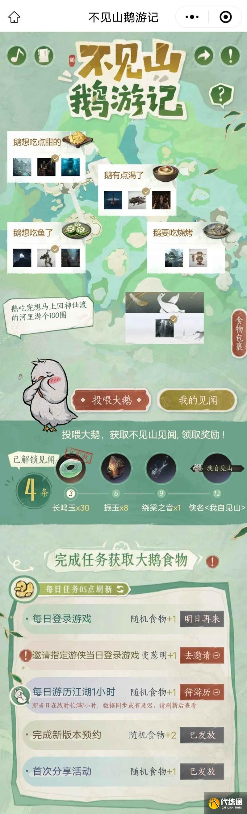 本次活動共設有十二條見聞任務,根據當前進度反饋,基本在兩天內即可全部完成。整體節奏較為輕松,適合各類玩家參與。燕云十六聲不見山鵝游記活動通過小號與大號聯動的方式,鼓勵玩家多賬號協作,提升活躍度。