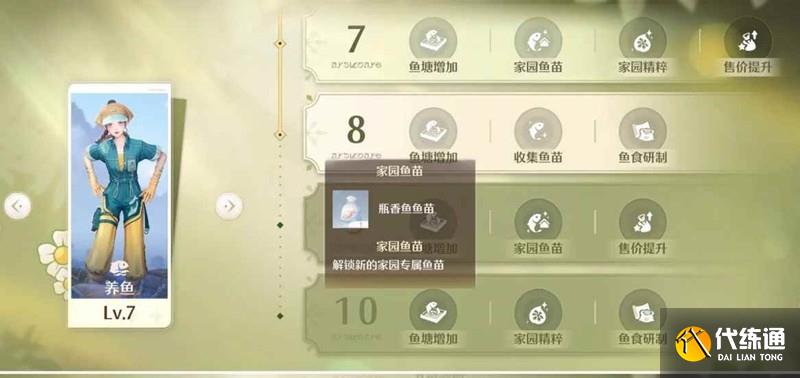 3.升級養魚9,即59696。養魚8級開始收集紫色魚苗,釣紗裙魚苗,然后刷熟練度拿12kg的成就。養魚9級解鎖瓶香魚,然后就有材料給藍色動物做頭飾了,做完還能再染色做成就。