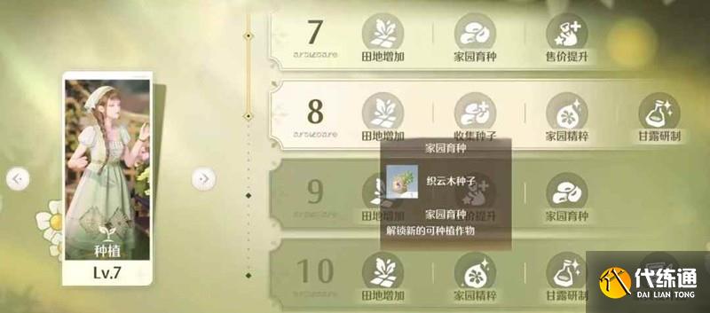 2.升級種植9,即59676。種植8級開始采時光果樹種子,囤一點美貌造景樹,參考玉絮紅梅掉率可能也不高,慢慢撿。
