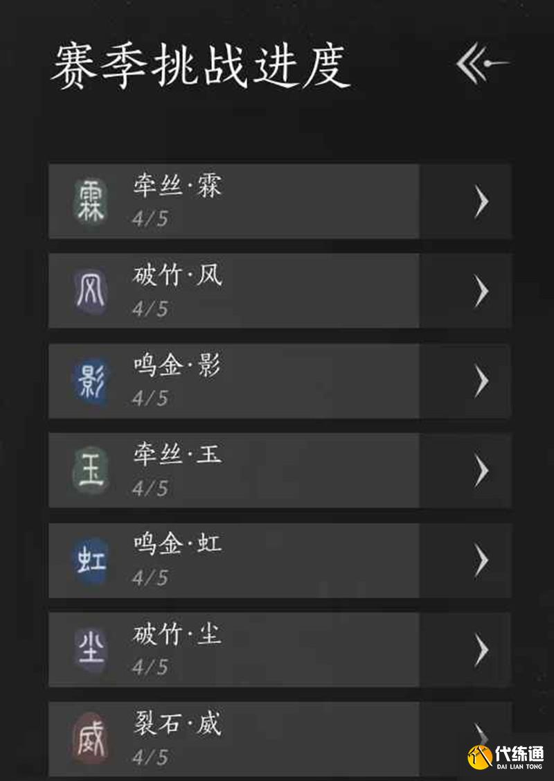 單人完美接傘6次兩把完美接傘造成共鳴傷害5次(要帶千營一呼 可以同步完成)三把副本繩鏢上失魂落魄之后完美接傘10次三把五殘,上完失魂落魄用特殊技(觸發時停)兩次兩把