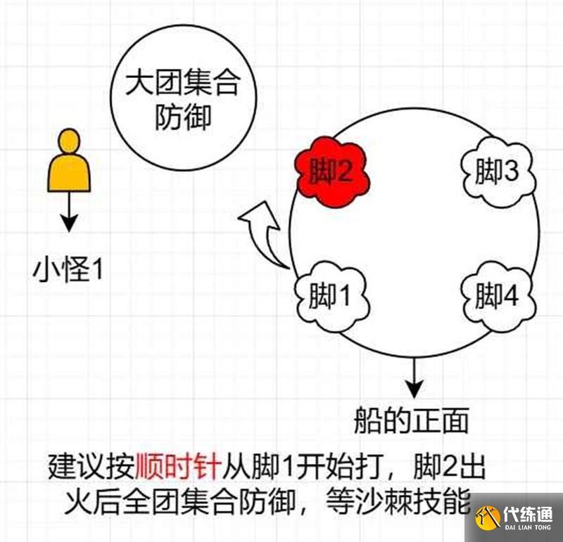 2、迷驛舟的腳上有火的時(shí)候躲開(kāi),換另一只腳打,否則有反傷,建議面對(duì)boss順時(shí)針打,第二個(gè)腳出火集合等小怪出來(lái)即可,如果全團(tuán)傷害高可跳過(guò)小怪階段