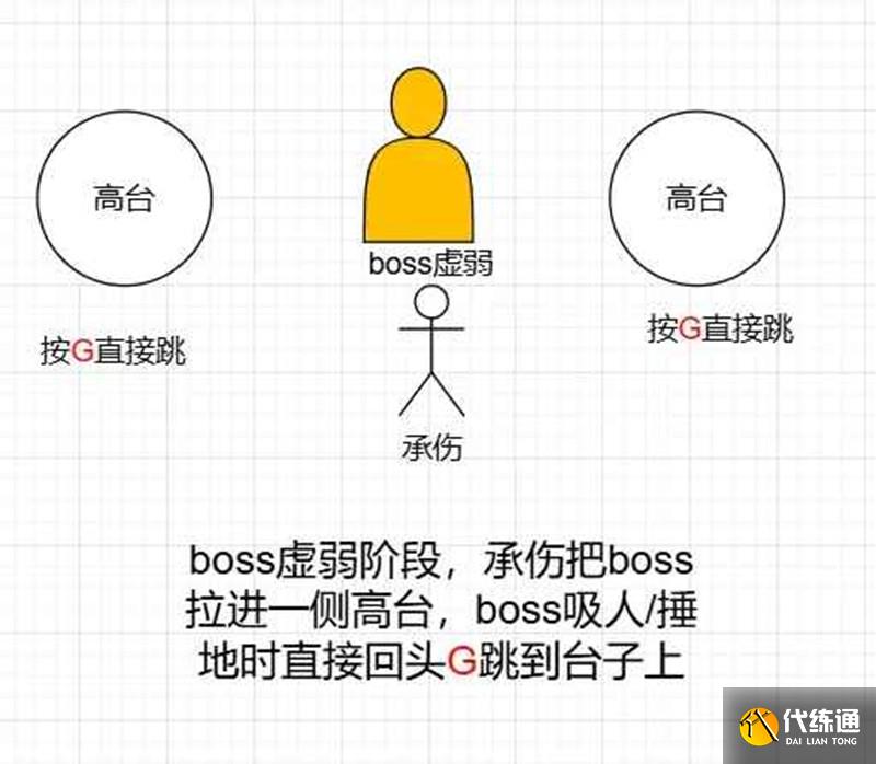 1、 boss點(diǎn)3個(gè)人放煙霧刺,被點(diǎn)的躲開(kāi),等技能變成可跳的臺(tái)子時(shí)跳上去然后跳大臺(tái)子,大臺(tái)子最多站5人。