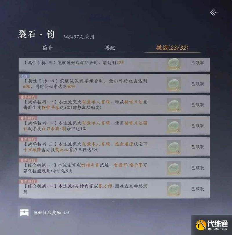 燕云南呂賽季流派挑戰 裂石鳴金流派挑戰怎么完成