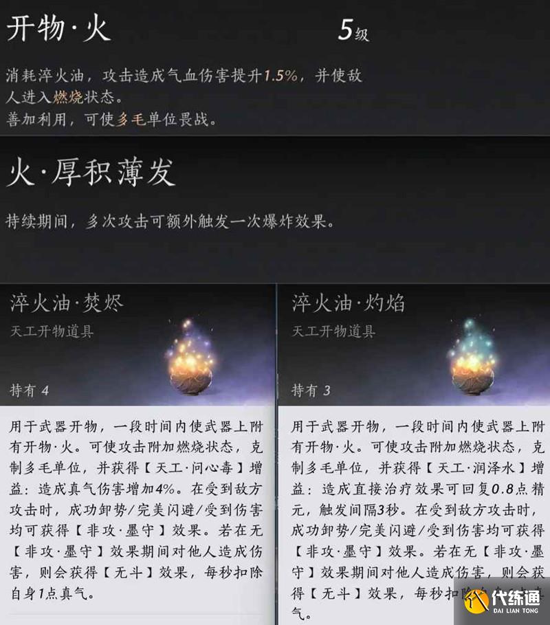 目前只能用火加水或毒,相當于同時用2個火+1個其他普通天工,獲得100%的火+80%的水或毒的基本效果。簡單說就是有比沒有強,感覺不賺,不過火毒我還是很喜歡的,反正毒多的用不完。
