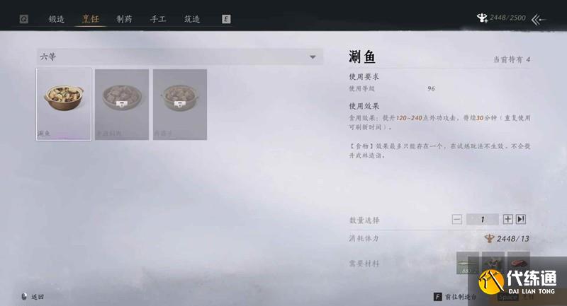 注:涮魚為100級新增益食物,食用后可獲得120-240點(diǎn)外功攻擊!!打本必備食物!