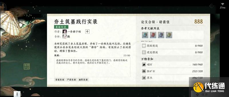 論文會有“材料清單”。將要求的每個材料都獲取即可。研鑿值會根據獲取的材料數量而提升。