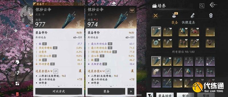 左邊四件:雙大外+會心+勁/敏,武器傘增傷
