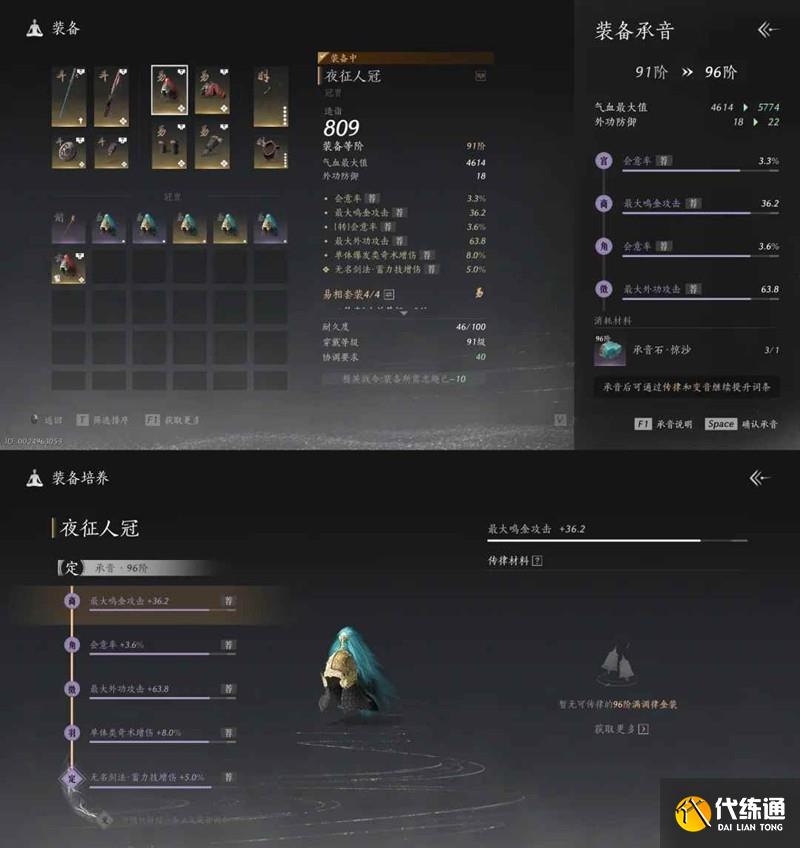 4.承音后基礎數值會下降,使用傳律功能拿同等階的滿調律裝備當狗糧來提升屬性