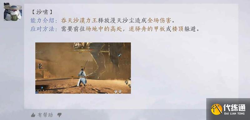 迷驛舟2-3:沙嘯,全隊不吃傷害,需要上樓頂或者船甲板,閣樓二樓也會吃到,一定要在樓頂,反應時間不長,需要提前準備好直接大輕功上樓。